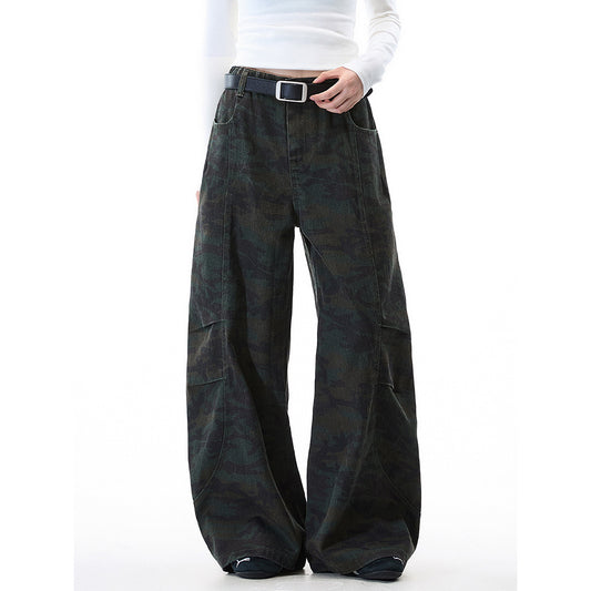 Style Winter Casual Streetwear Washed Vintage Splatter Denim Pants Men Straight Loose Oversize Versatile Tapered Jeans